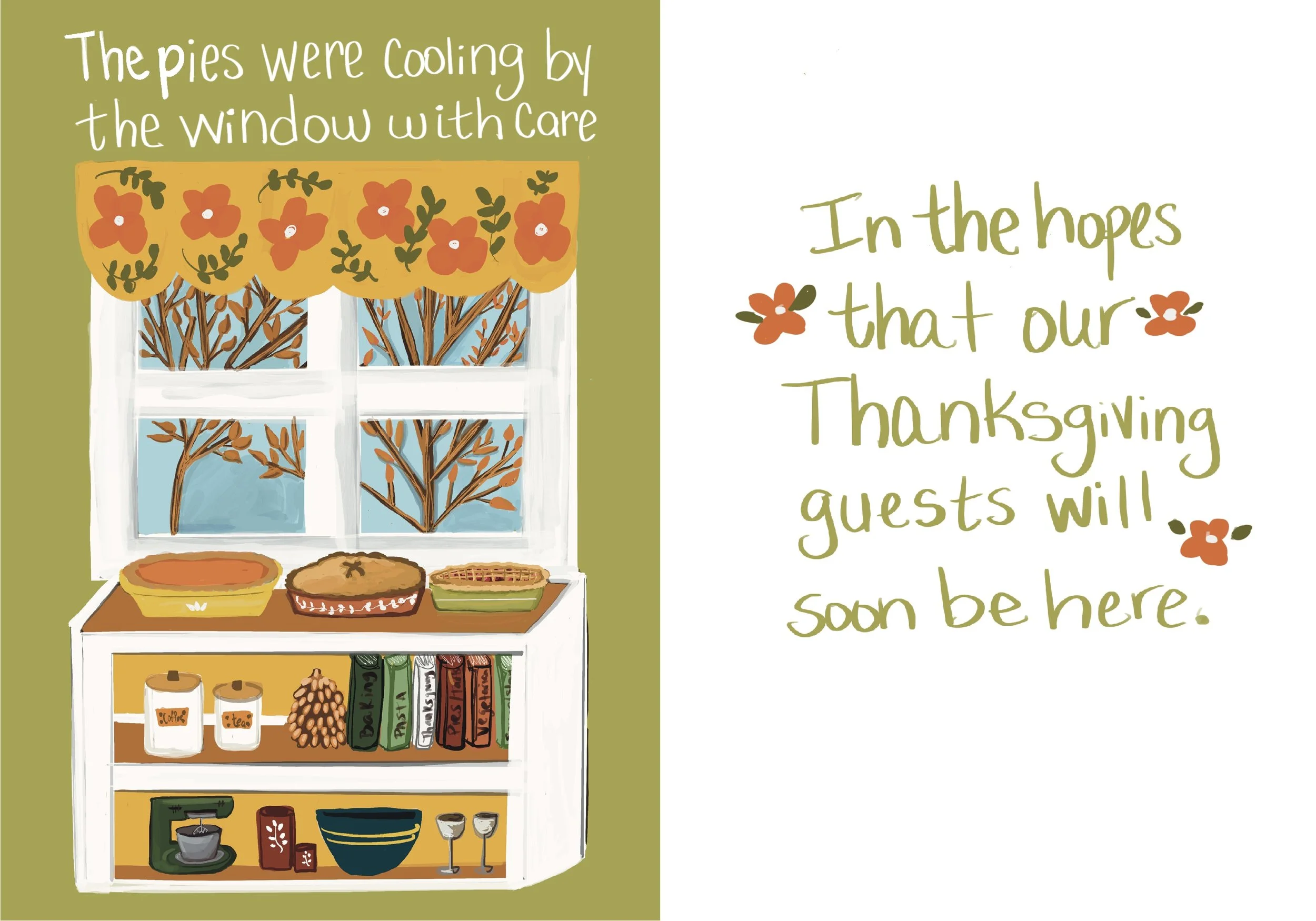 Pattern featuring fall-themed decorations such as sunflower wreaths, pumpkins, ears of Indian corn, and small floral accents on a yellow background.
