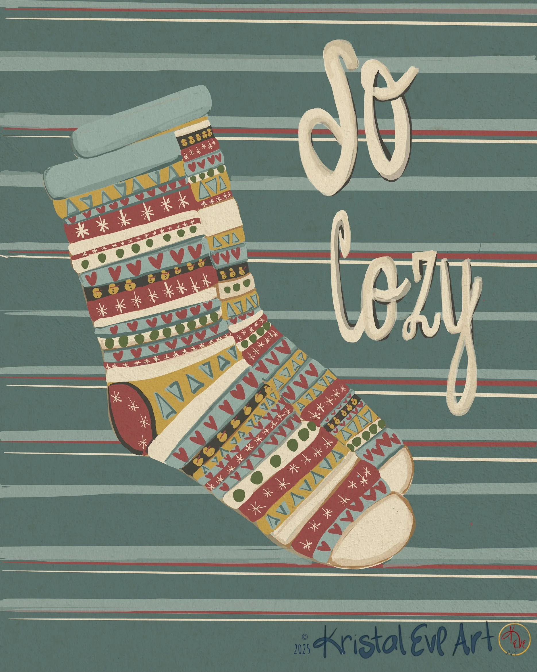 Pattern of cats wearing Christmas stockings with holiday decorations on a green background.